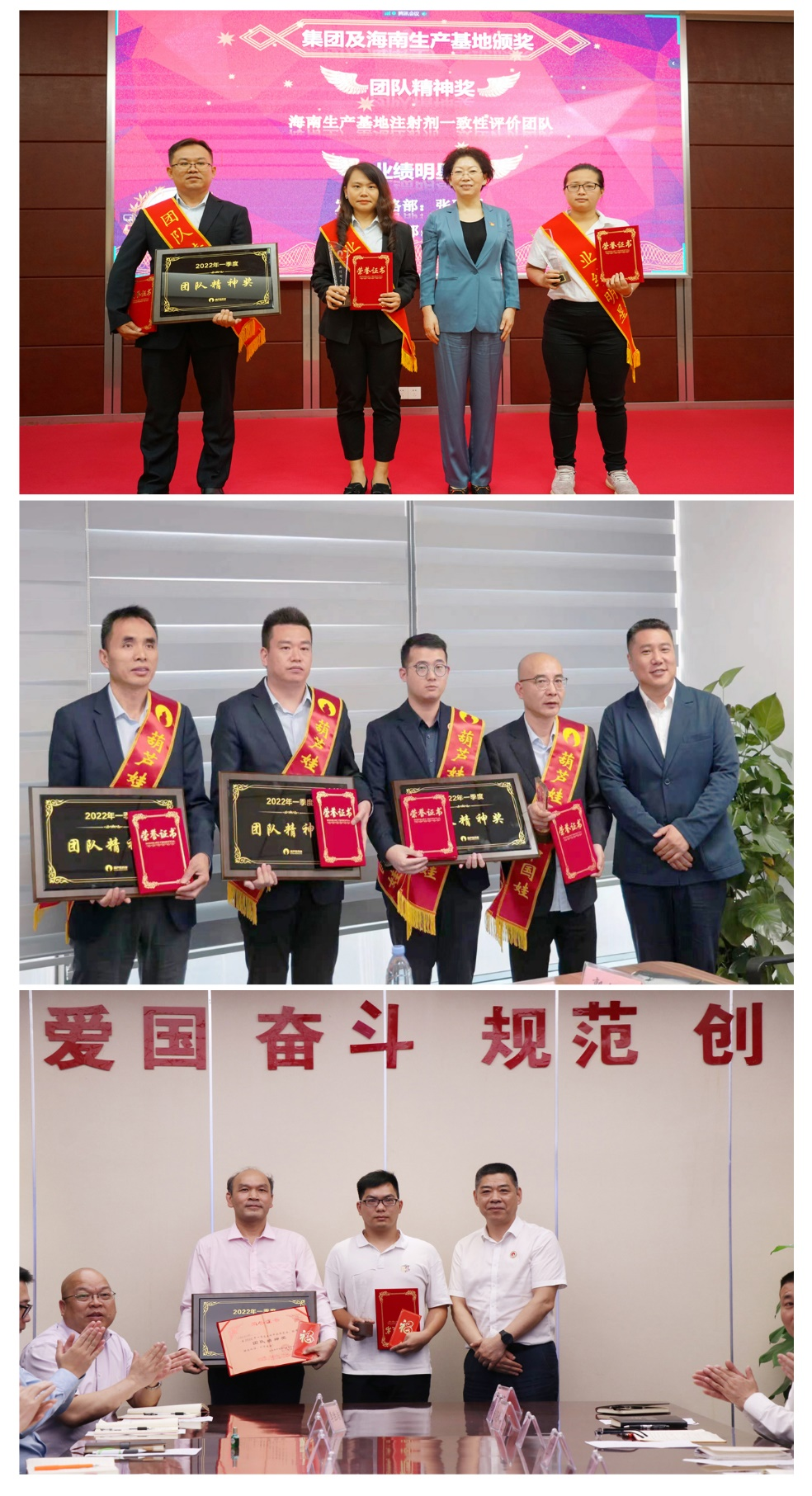 为了表彰在2022年一季度“深化变革,赢得开门红”工作中“超额完成计划、超出本职工作或超越组织预期”的先进集体和优秀个人,会议期间还举行了z6mg·人生就是博药业集团2022年一季度“开门红”表彰颁奖仪式。营销中心葫芦世家事业部湖南区域主管黄子杰等12人荣获业绩明星奖,葫芦世家事业部等5个集体荣获团队精神奖。