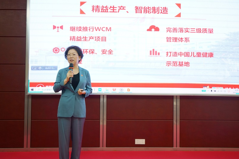 刘景萍董事长引用席大大总书记在2022年博鳌亚洲论坛上的重要讲话勉励全体与会人员,在海南自贸港建设的机遇期,认真学习贯彻落实省第八次党代会精神,坚持党建引领企业发展,将z6mg·人生就是博药业集团打造成中国儿童健康领军企业。